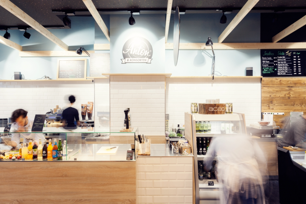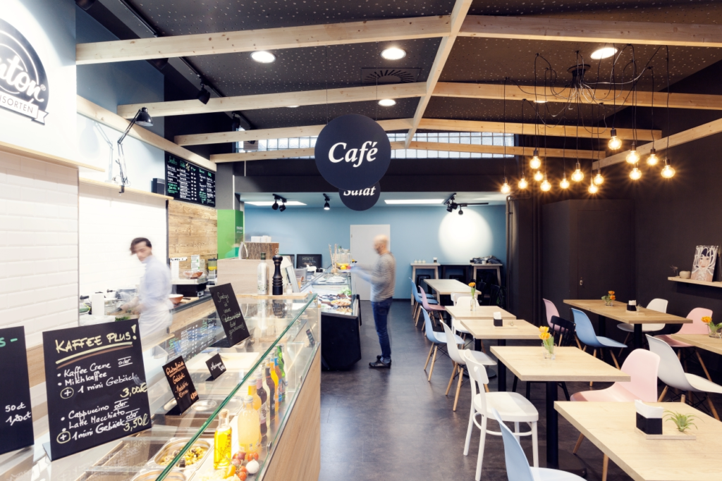 Die Herausforderung bei der Planung für diesen Food Court in der Karlsruher Fußgängerzone bestand darin, das kulinarische Angebot unterschiedlicher Franchisenehmer unter einem gemeinsamen Dach zu vereinen – kosteneffizient, funktional und gestalterisch ansprechend.