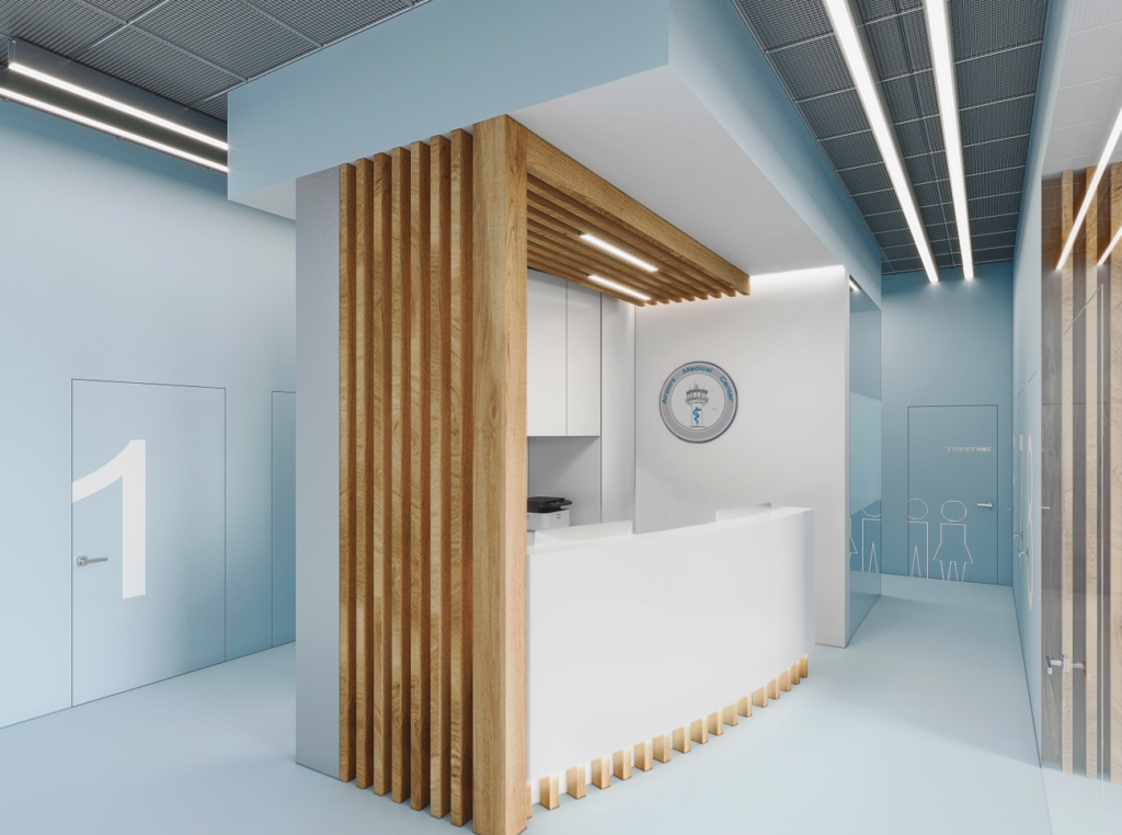 Zudem wurde das Licht-, Farb-, Material- und Leitsystemkonzept mit viel Liebe zum Detail und selbstverständlich nach baurechtlichen Anforderungen realisiert (wie zum Beispiel Behandlungs- & Mitarbeiterräume, Oberflächen, barrierefreies WC mit Notalarm, Trennung von reinen und unreinen Bereichen usw.).